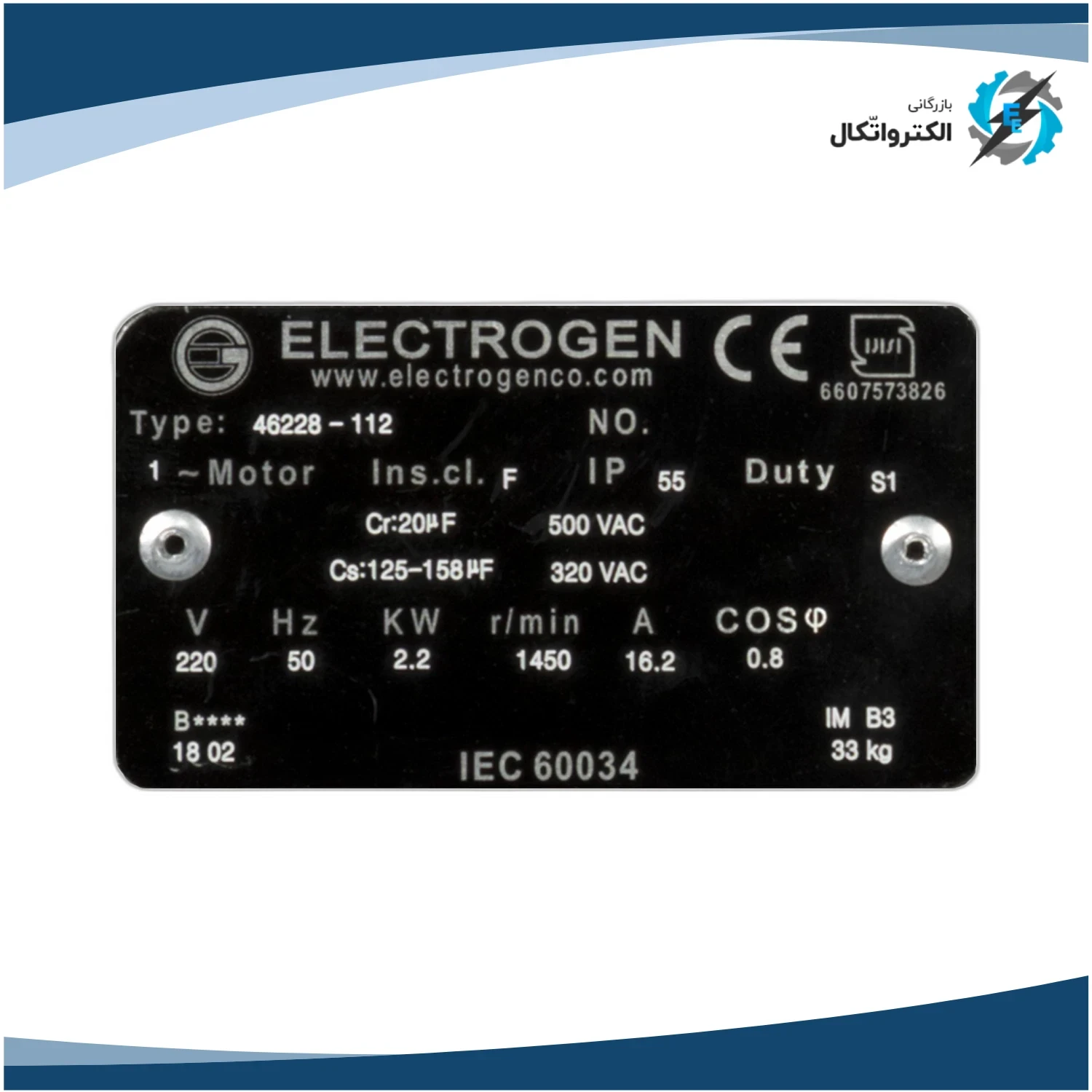 الکتروموتور الکتروژن تک فاز ۳ اسب بخار (۲.۲ کیلووات) پوسته آلومینیومی ۱۵۰۰ دور دو خازن