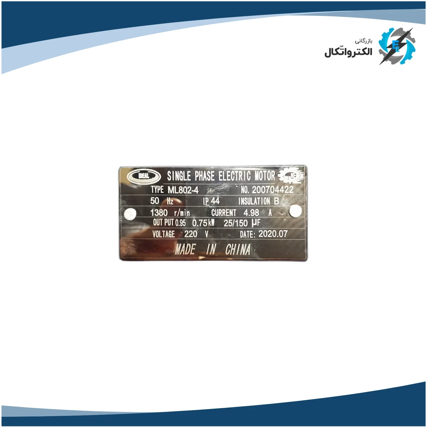 الکتروموتور ایدهآل تک فاز ۱ اسب بخار (۰.۷۵ کیلووات) پوسته آلومینیوم ۱۵۰۰ دور
