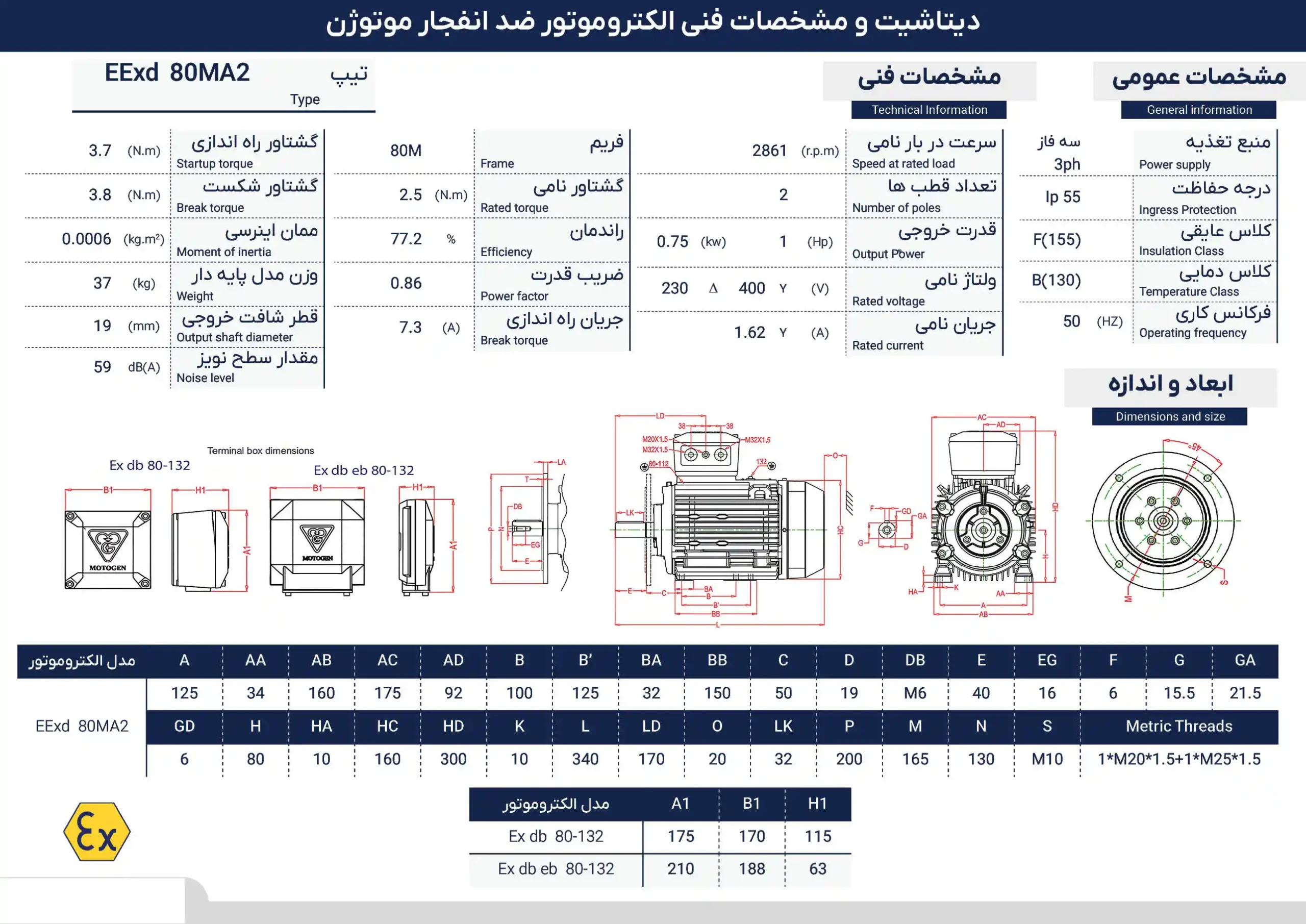 الکتروموتور ضد انفجار موتوژن ۱ اسب بخار مطابق با الزامات حفاظتی طراحی شده است تا از بروز هرگونه جرقه یا انتشار شعله به محیط اطراف جلوگیری کند. این ویژگی برای صنایع نفت، گاز، پتروشیمی، کارگاههای تولید رنگ، تونلهای تهویه و محیطهایی با مواد قابل اشتعال حیاتی است. آببندی مناسب اجزا، استفاده از متریال باکیفیت و طراحی دقیق منافذ، حفاظت قابلاتکایی در برابر ورود گردوغبار و رطوبت ایجاد میکند.