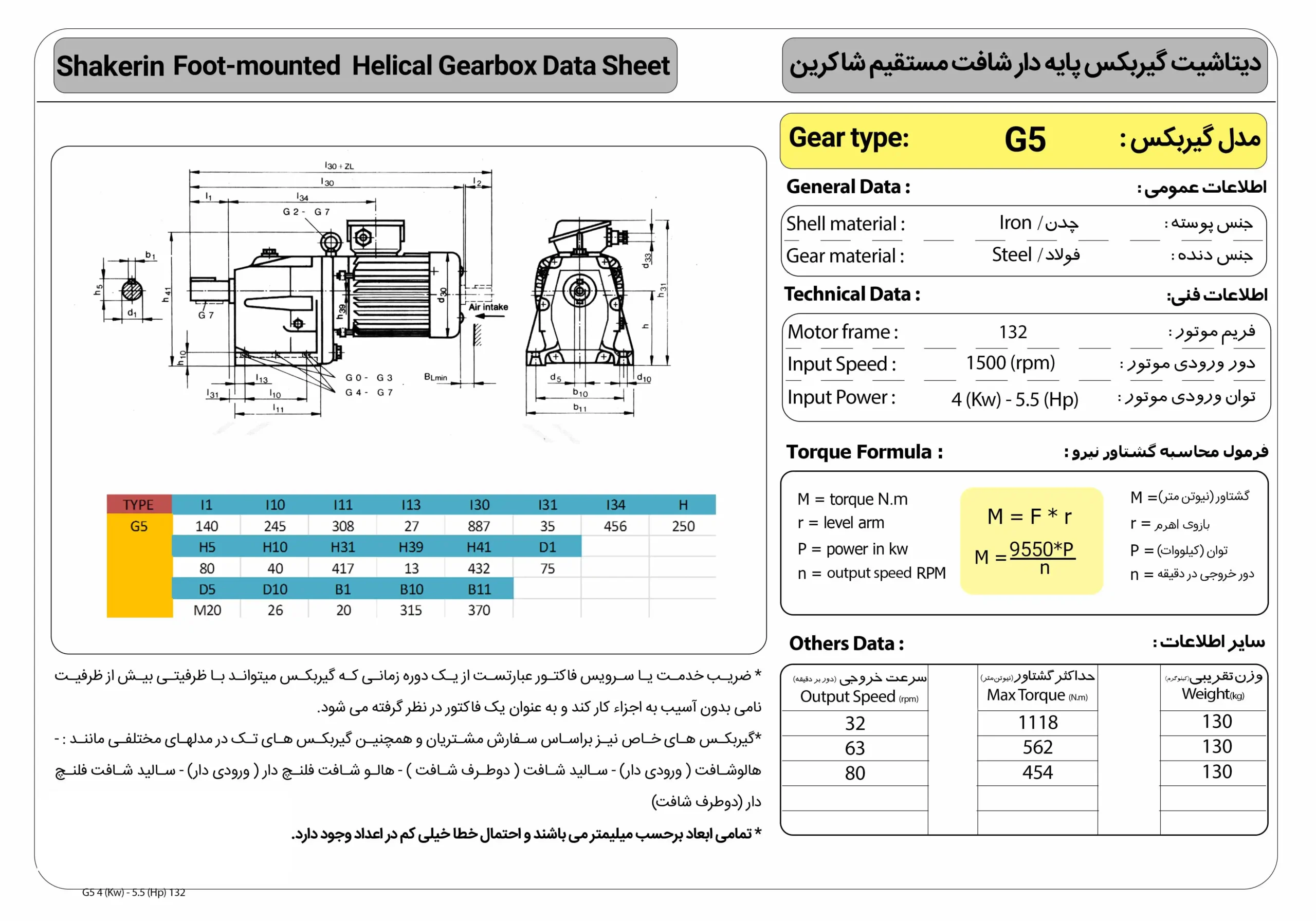 الکتروگیربکس شاکرین شافت مستقیم ۵.۵ اسب (۴ کیلووات)