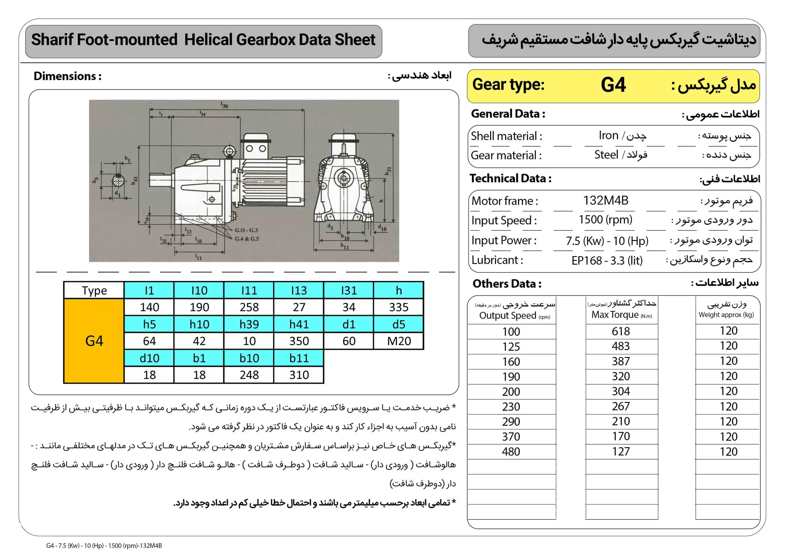 الکتروگیربکس شریف هلیکال شافت مستقیم ۱۰ اسب ۷.۵ کیلووات