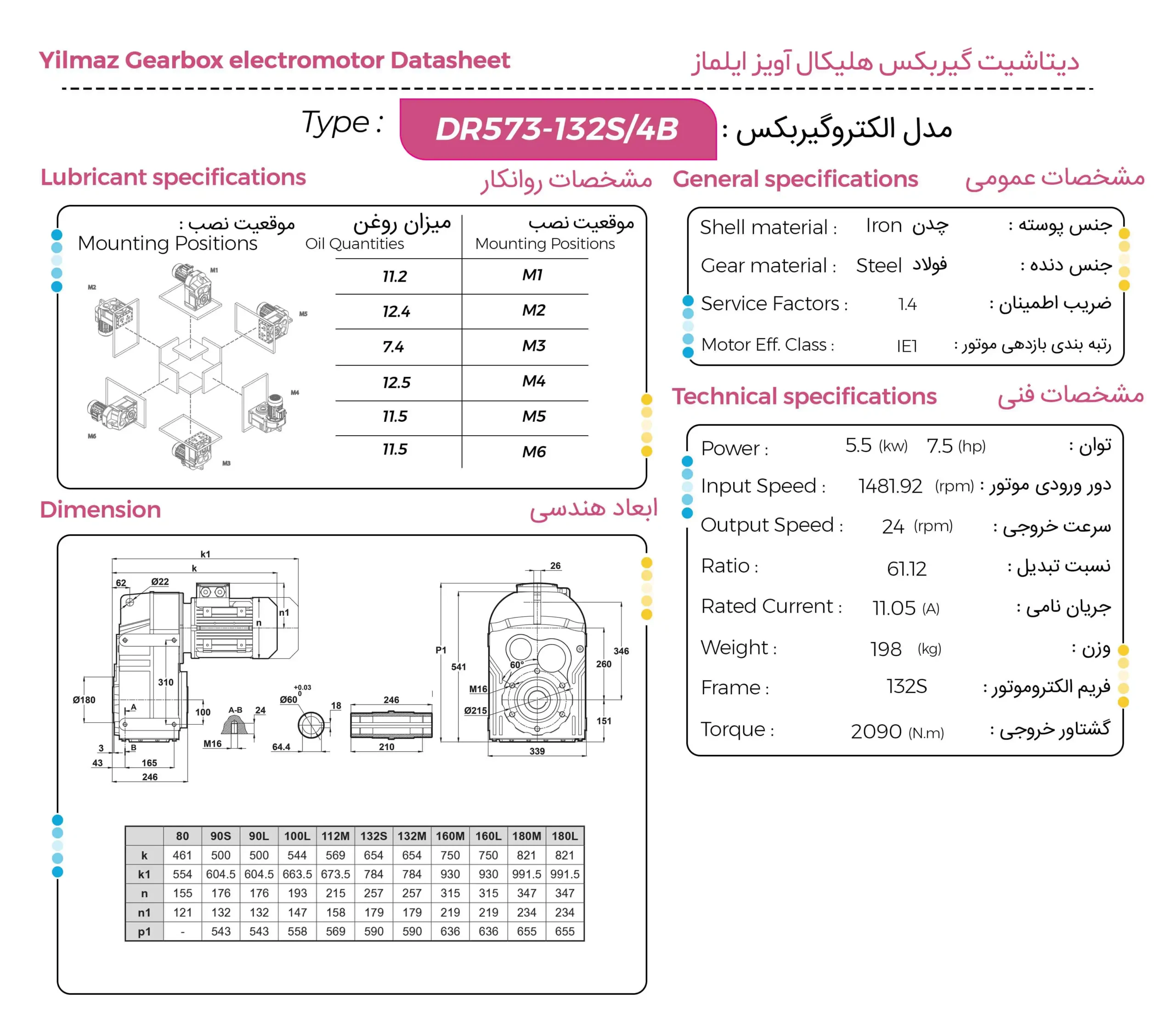 الکتروگیربکس ایلماز سری DR با توان 5.5 کیلووات، ترکیبی از مهندسی دقیق اروپایی و انعطاف‌پذیری نصب را به ارمغان می‌آورد و یک سرمایه‌گذاری مطمئن برای افزایش بهره‌وری و کاهش زمان از کارافتادگی در فرآیندهای صنعتی شماست.