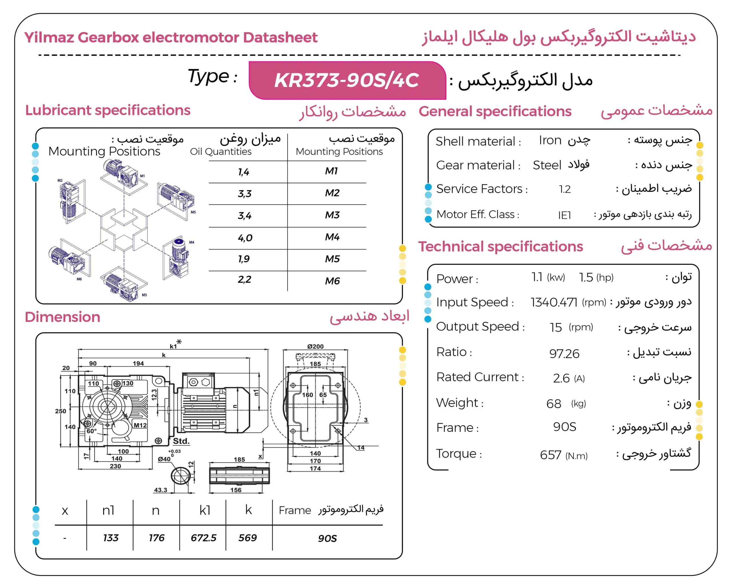 گیربکس بول هلیکال ایلماز YILMAZ سری KR توان ۱.۱ کیلووات