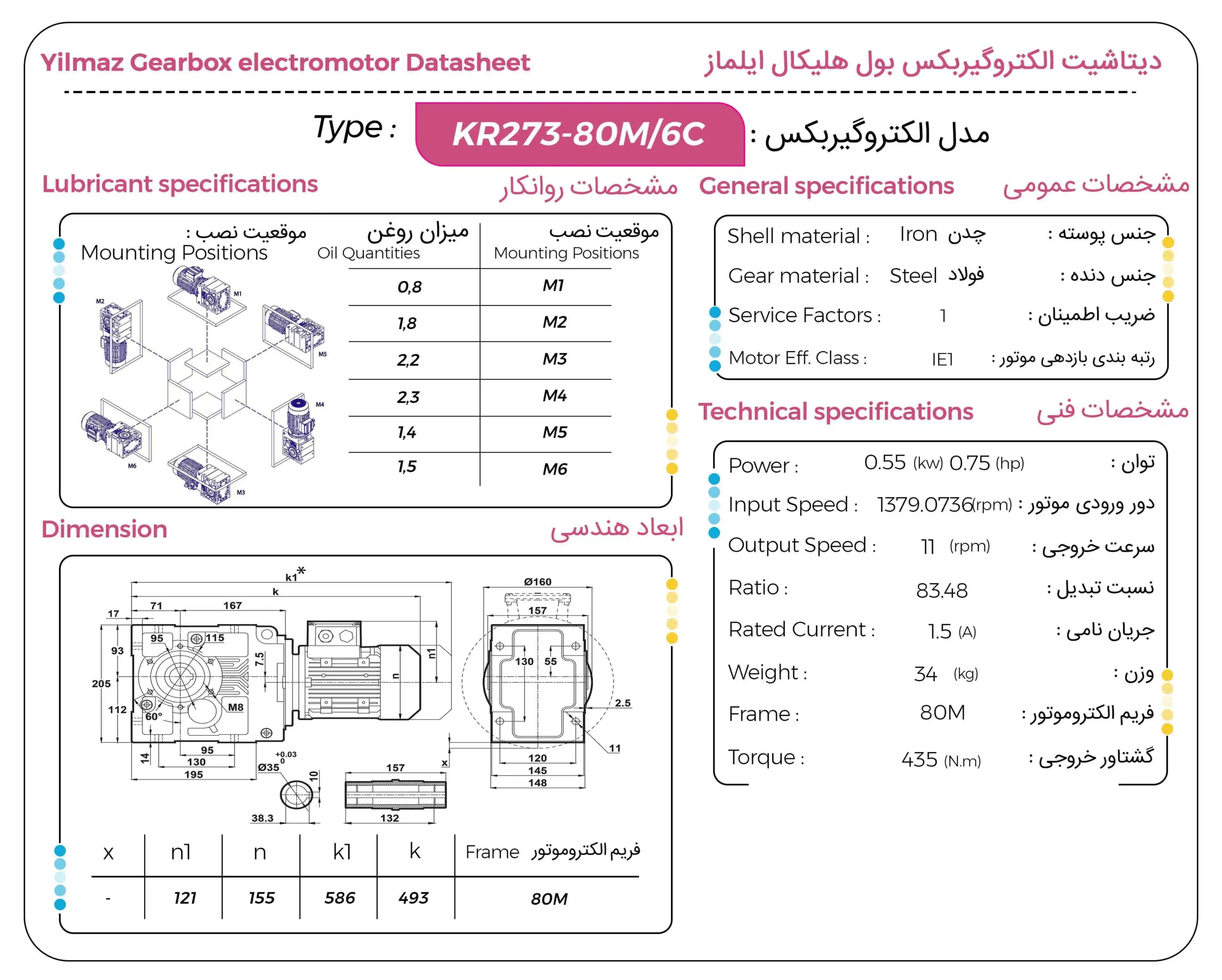 گیربکس بول هلیکال ایلماز YILMAZ سری KR توان ۰.۵۵ کیلووات