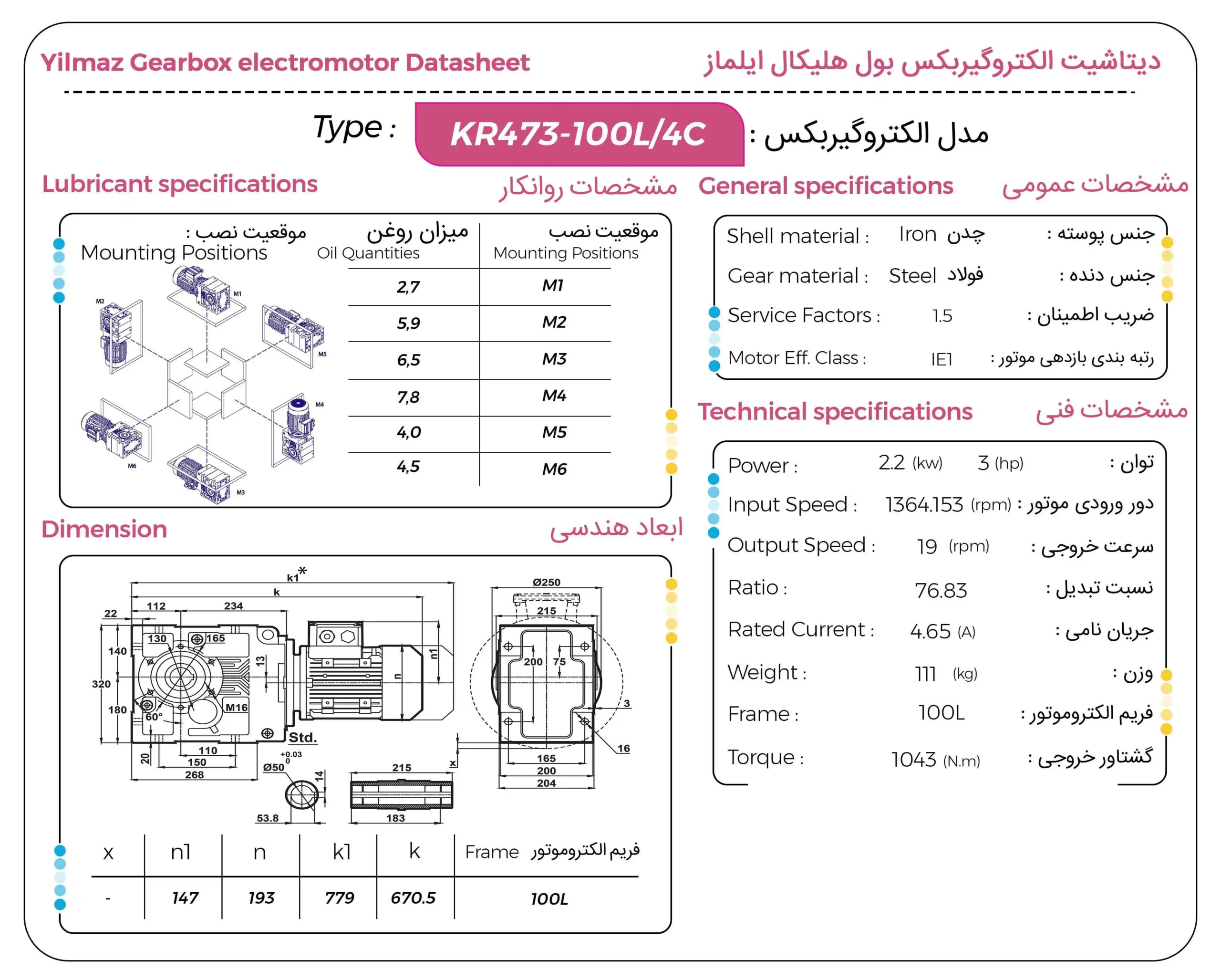 گیربکس بول هلیکال ایلماز YILMAZ سری KR توان ۲.۲ کیلووات