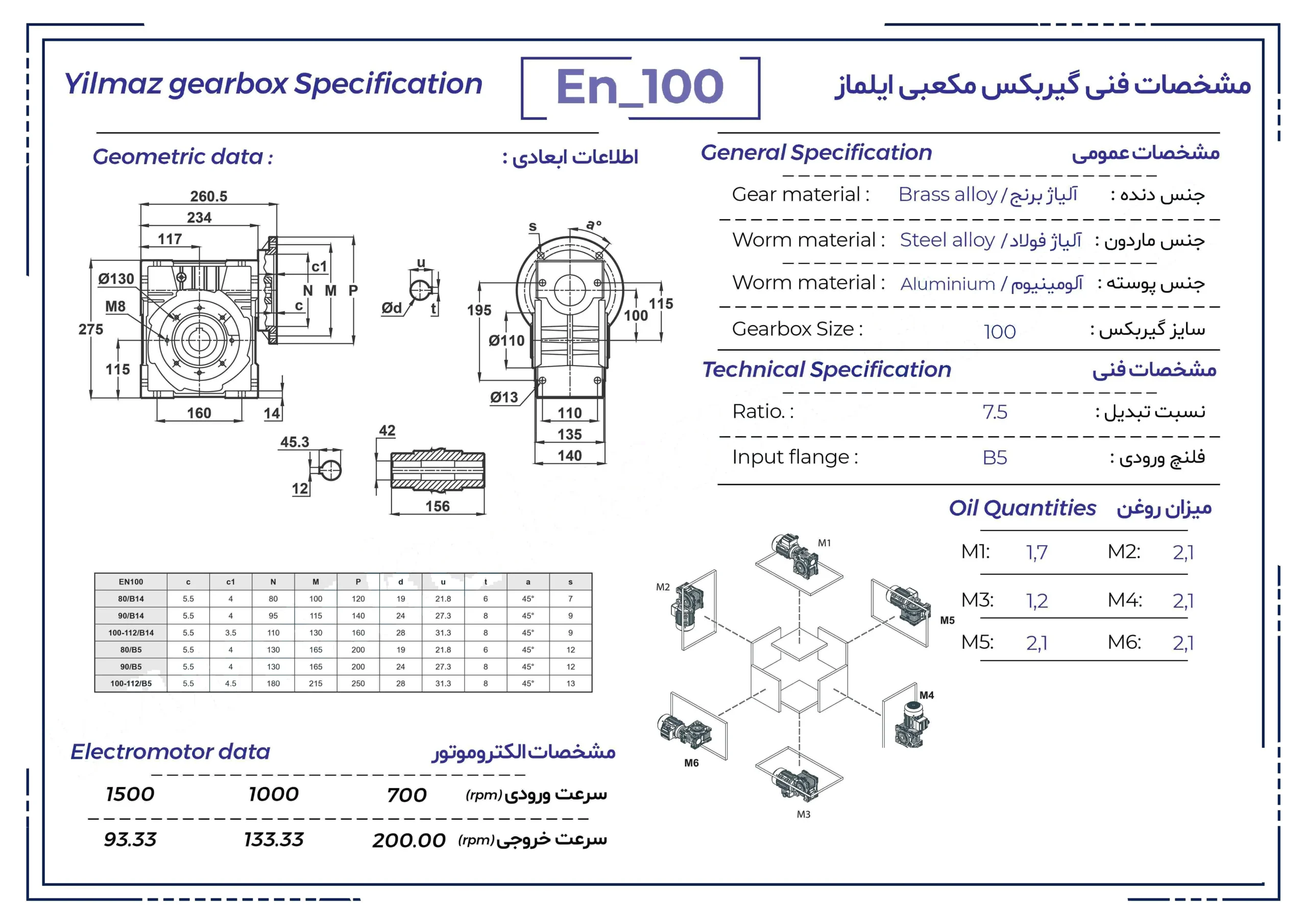 گیربکس حلزونی ایلماز کتابی سایز ۱۰۰ سری EN