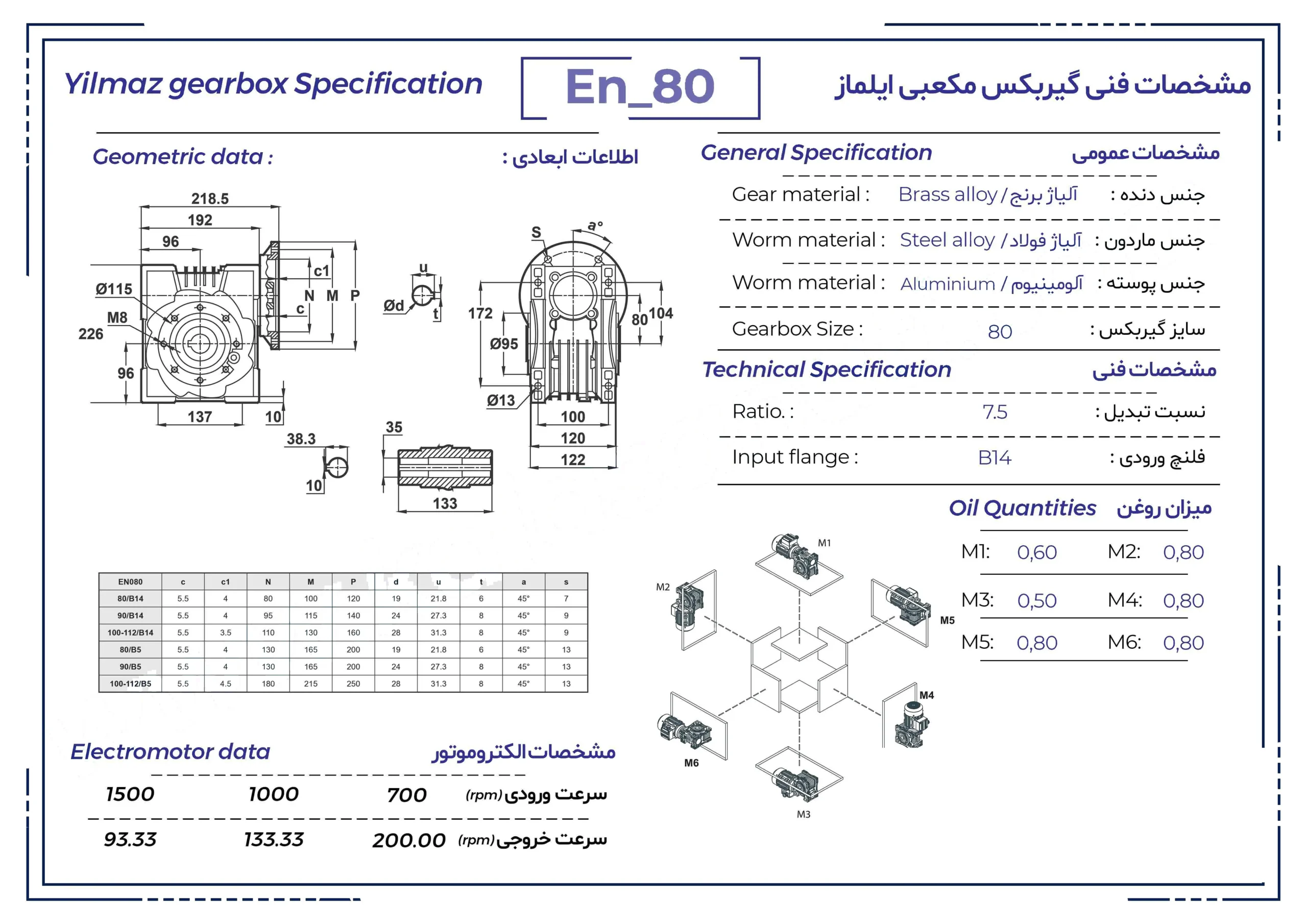 گیربکس حلزونی ایلماز کتابی سایز ۸۰ سری EN – قدرت و دقت در انتقال نیرو