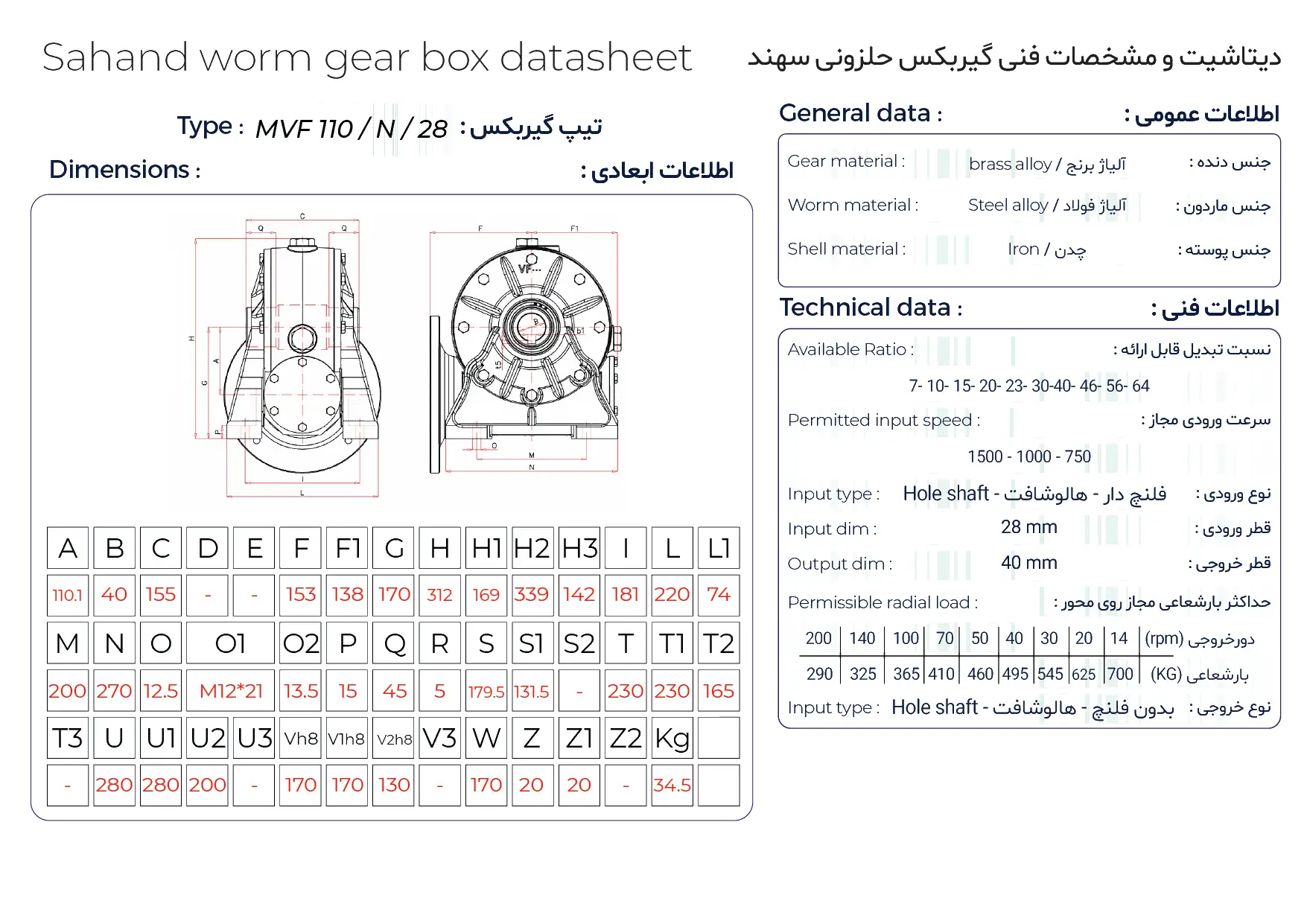 گیربکس حلزونی MVF سایز ۱۱۰ فلنجدار قابلیت کوپل مستقیم با الکتروموتور را دارد و در بسیاری از کاربردهای صنعتی در کنار موتور سه فاز استفاده میشود. انتخاب صحیح توان موتور و نسبت تبدیل مناسب، تأثیر مستقیمی بر راندمان سیستم و کاهش استهلاک دارد. در این زمینه، آشنایی با اصول فنی انتخاب موتور میتواند نقش مهمی در بهینهسازی عملکرد ایفا کند که بهصورت جامع در راهنمای انتخاب الکتروموتور بررسی شده است.