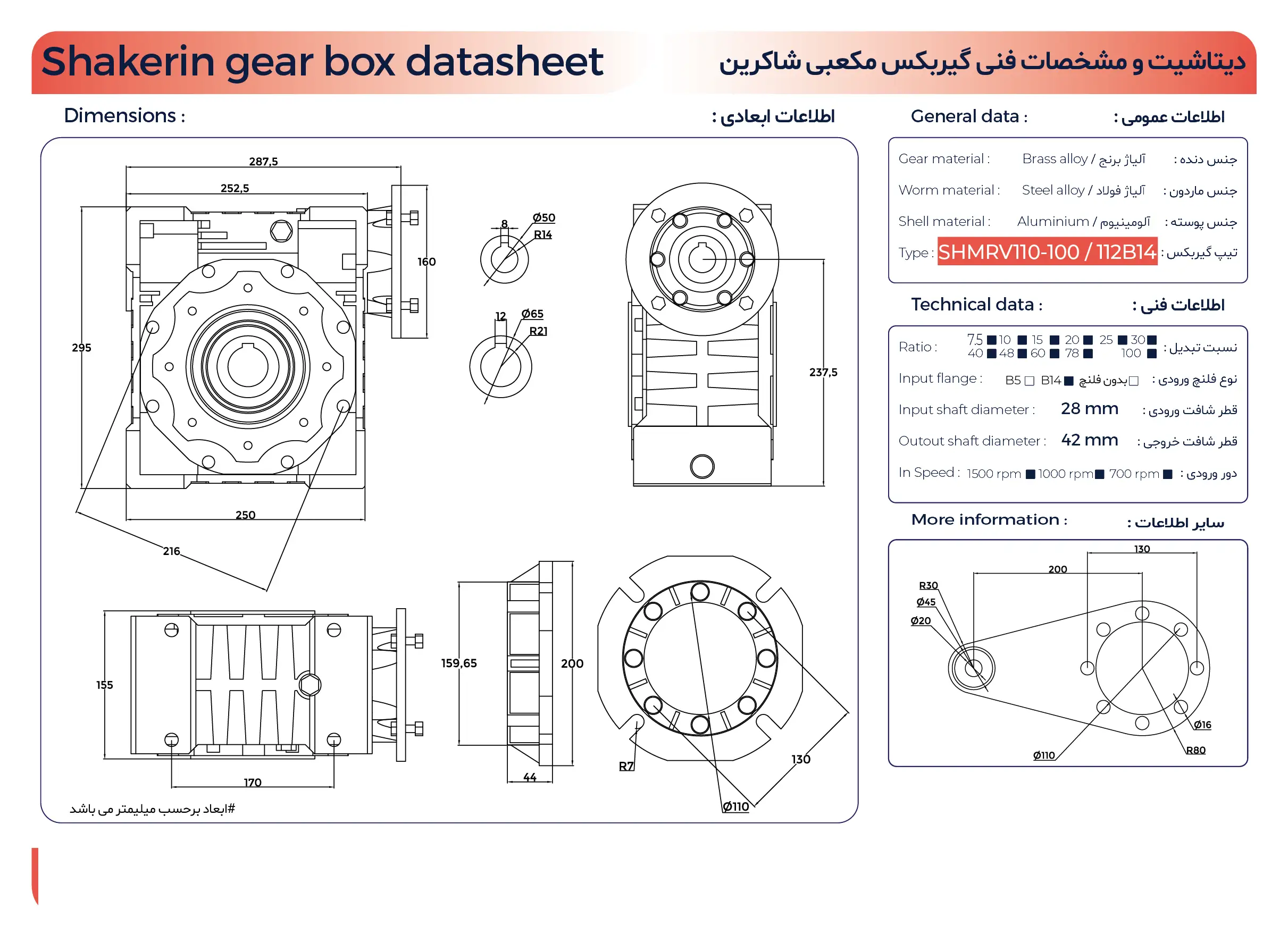 گیربکس حلزونی کتابی شاکرین سایز ۱۱۰ سری SHMRV — راهحل قدرتمند برای بارهای متوسط و سنگین