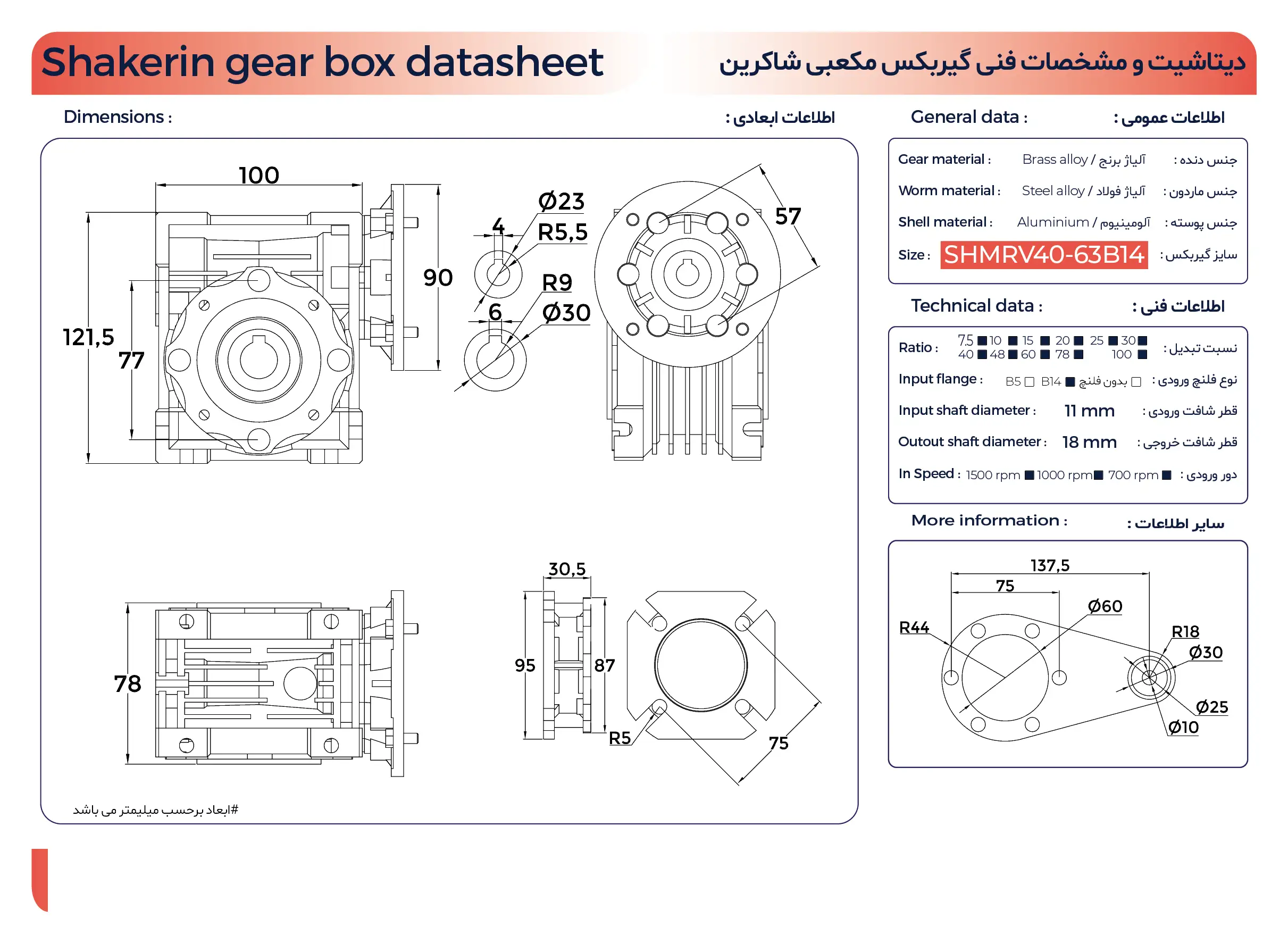 گیربکس حلزونی کتابی شاکرین سایز ۴۰ SHMRV