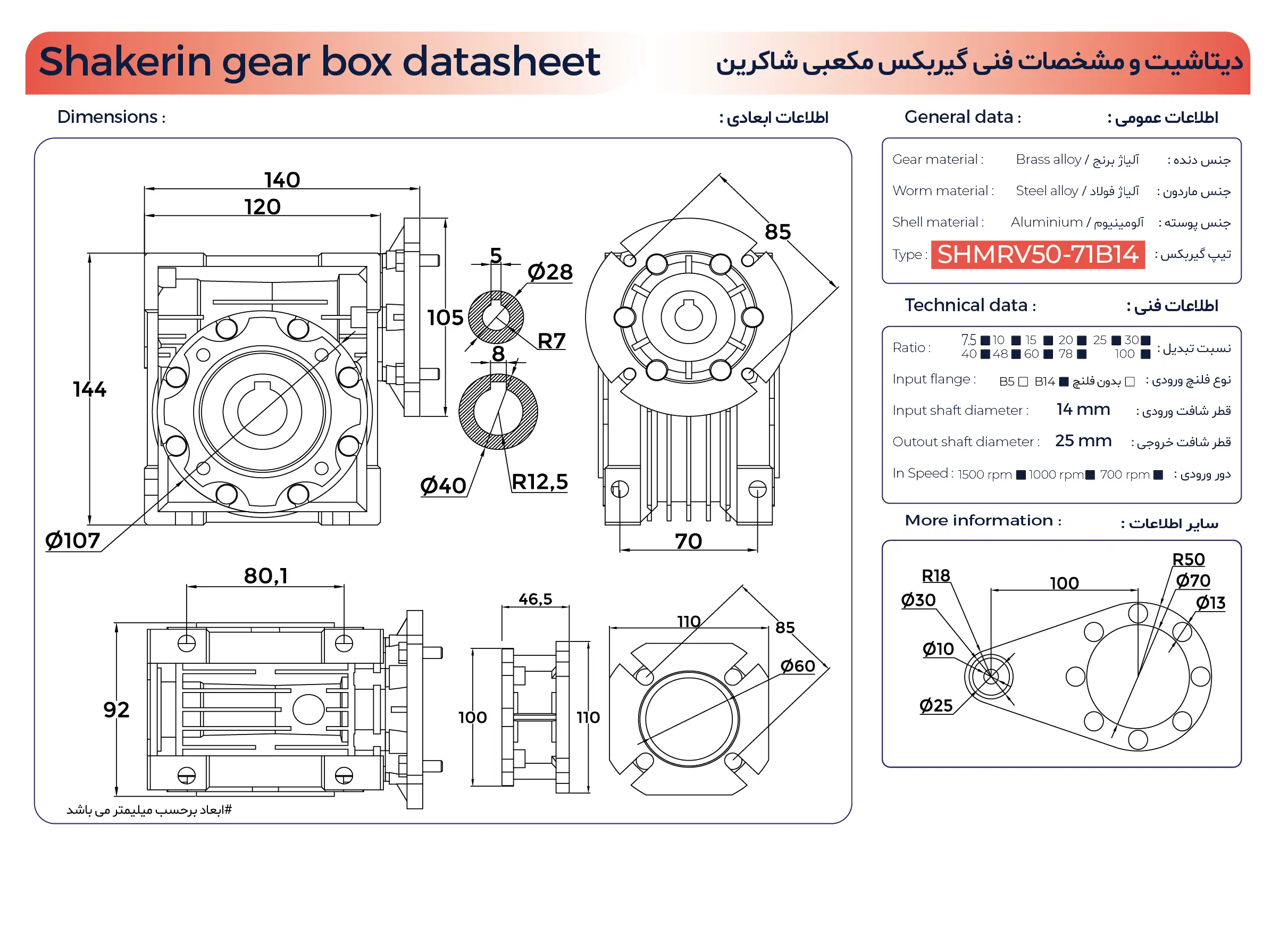گیربکس حلزونی کتابی شاکرین سایز ۵۰ سری SHMRV — عملکرد نرم و نصب آسان برای خطوط صنعتی