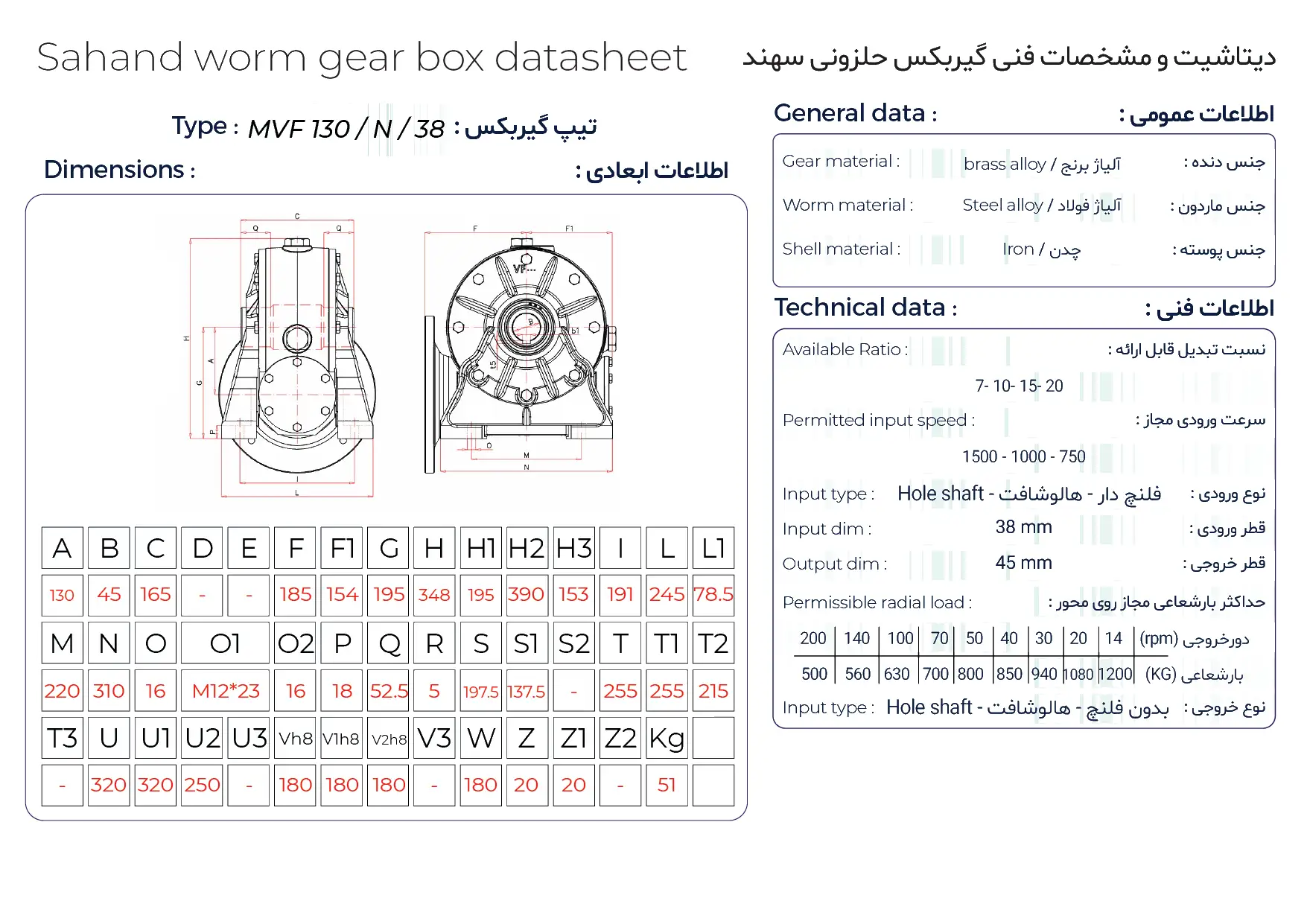 گیربکس حلزونی سهند MVF سایز ۱۳۰ فلنجدار معمولاً در کنار **الکتروموتور**های صنعتی مورد استفاده قرار میگیرد و در بسیاری از کاربردها با الکتروموتور سه فاز کوپل میشود. انتخاب صحیح توان موتور و نسبت تبدیل گیربکس، نقش مهمی در افزایش راندمان، کاهش مصرف انرژی و جلوگیری از استهلاک زودهنگام سیستم دارد. اصول فنی این انتخاب بهصورت کامل در راهنمای انتخاب الکتروموتور تشریح شده است.