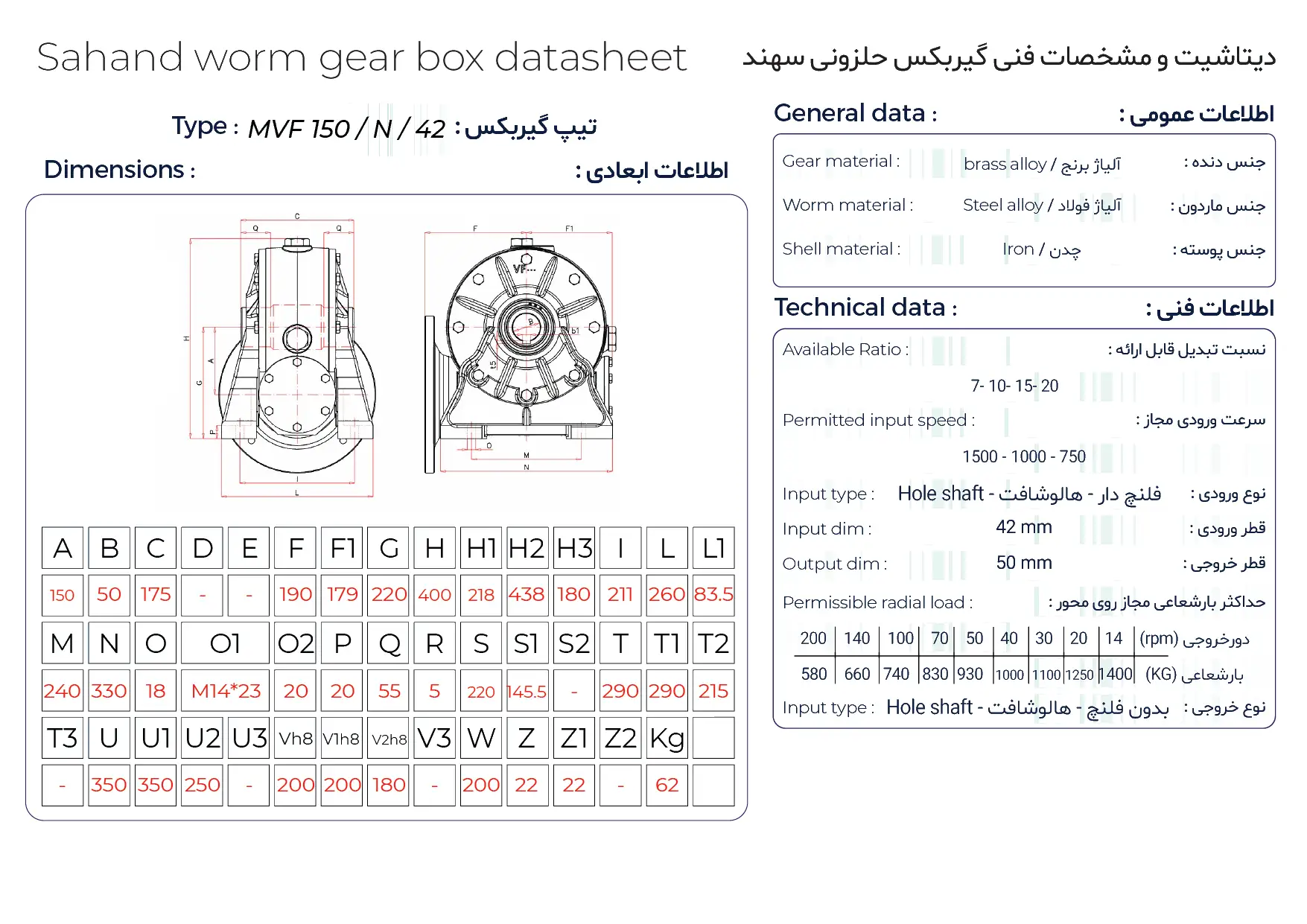 جایگاه سایز ۱۵۰ در سری MVF سهند