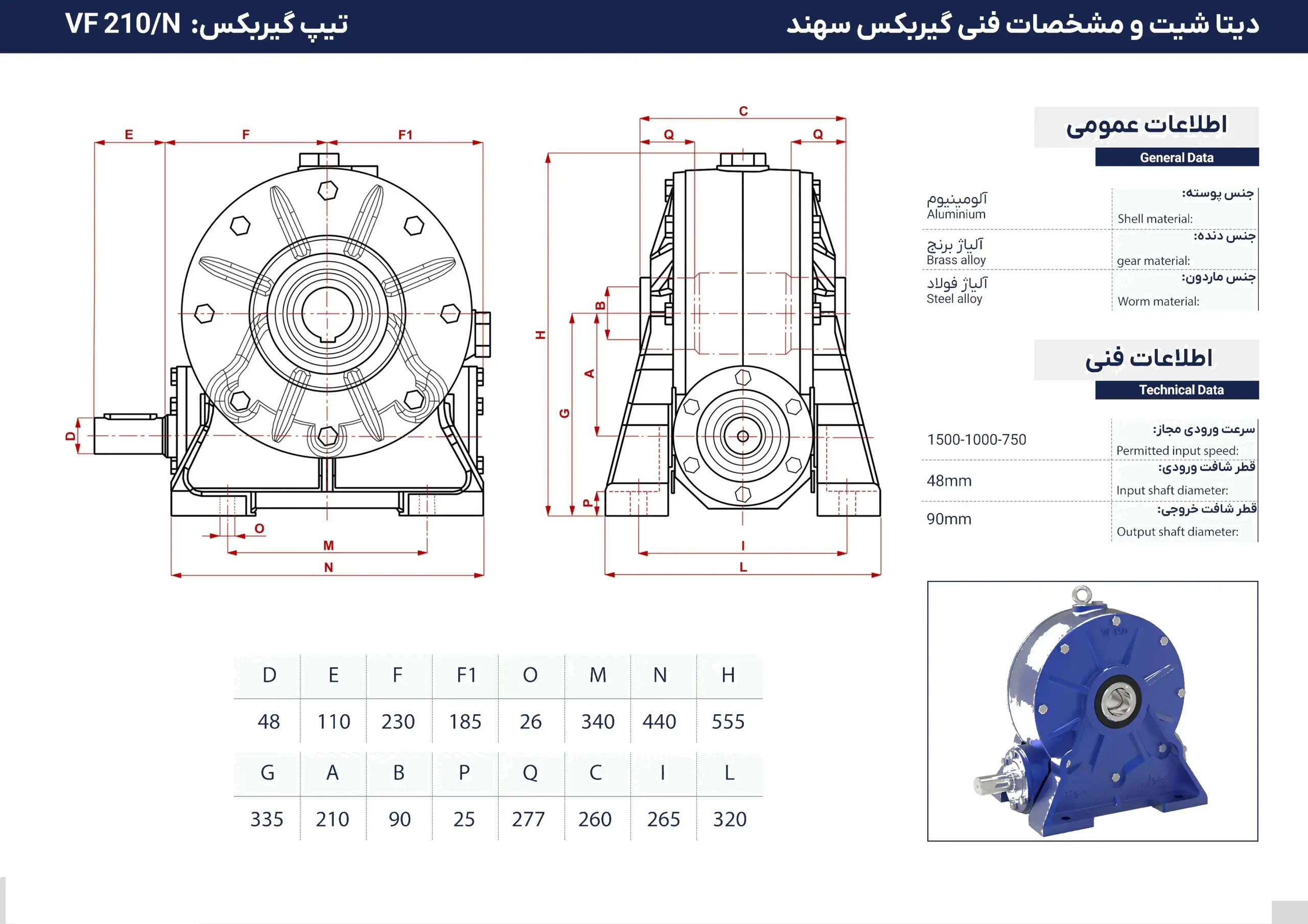 گیربکس سهند VF سایز ۲۱۰ پایهدار در دسته گیربکس حلزونی قرار میگیرد و بهعنوان یکی از محصولات تولید داخل، با استانداردهای رایج صنعتی سازگار است. این سایز تعادل مناسبی میان ابعاد فیزیکی، توان انتقال گشتاور و طول عمر کاری ایجاد میکند. در مقایسه با گزینههایی مانند گیربکسهای پلانتری، تمرکز اصلی این مدل بر سادگی ساختار، هزینه نگهداری کمتر و عملکرد پایدار در شرایط کاری مداوم است. همین موضوع باعث شده سایز ۲۱۰ در پروژههایی با بار یکنواخت و نیاز به کاهش دور زیاد، انتخابی منطقی باشد.