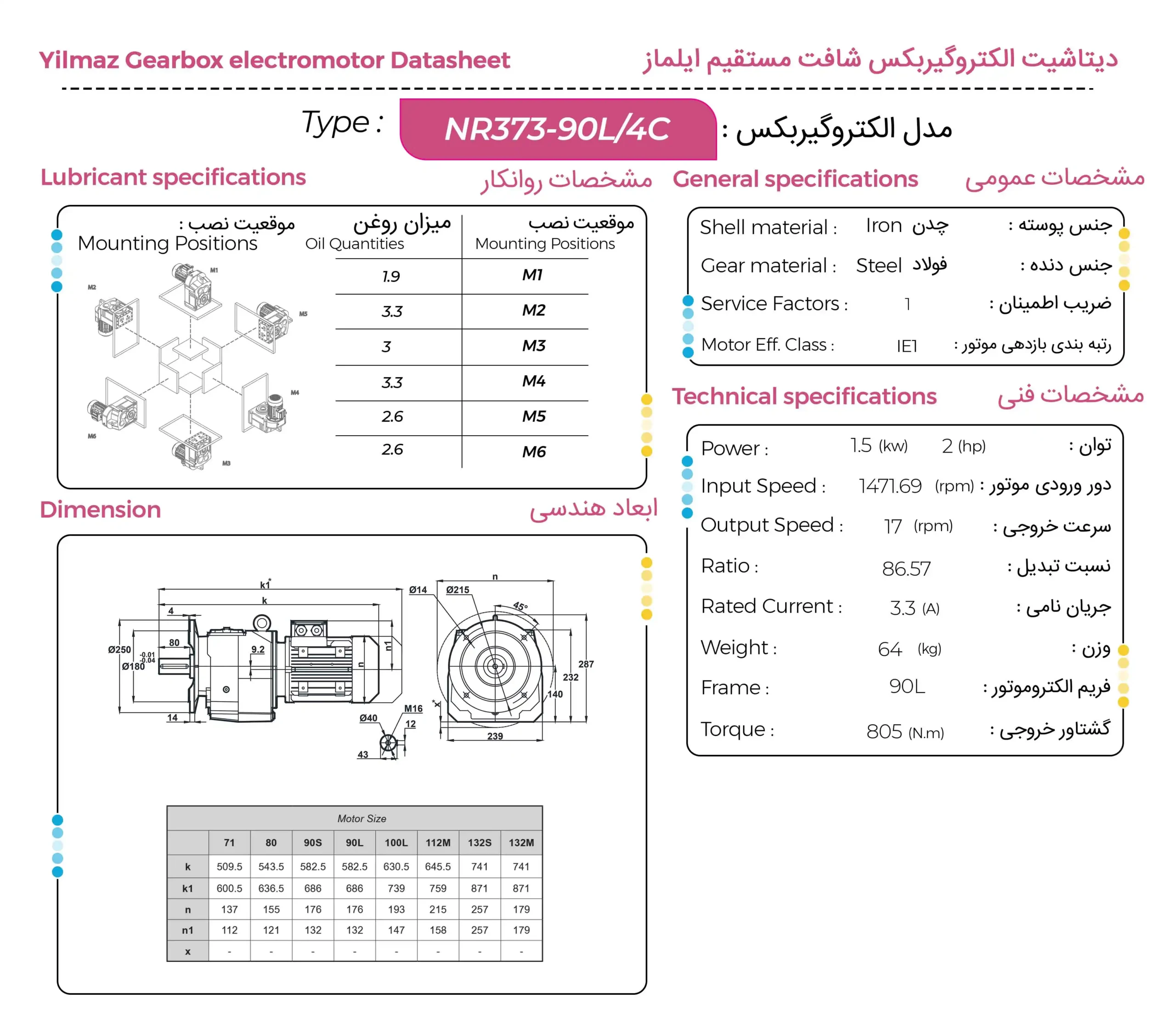 برند ایلماز در میان گیربکسهای خارجی شناخته شده است و به دلیل تمرکز بر کیفیت ساخت و نوآوری، محصولات آن در بازارهای بینالمللی محبوبیت دارند. سری NR با توان 1.5 کیلووات، نمادی از تعهد ایلماز به تولید تجهیزات انتقال قدرت با طول عمر بالا است. این محصول با توجه به استانداردهای سختگیرانه جهانی تولید شده و یک سرمایهگذاری مطمئن برای کسبوکارهایی است که به دنبال کاهش زمان توقف (Downtime) و افزایش بهرهوری ماشینآلات خود هستند. نگهداری صحیح و بازرسی منظم روغن، کلید حفظ عملکرد مطلوب این گیربکس صنعتی خواهد بود.