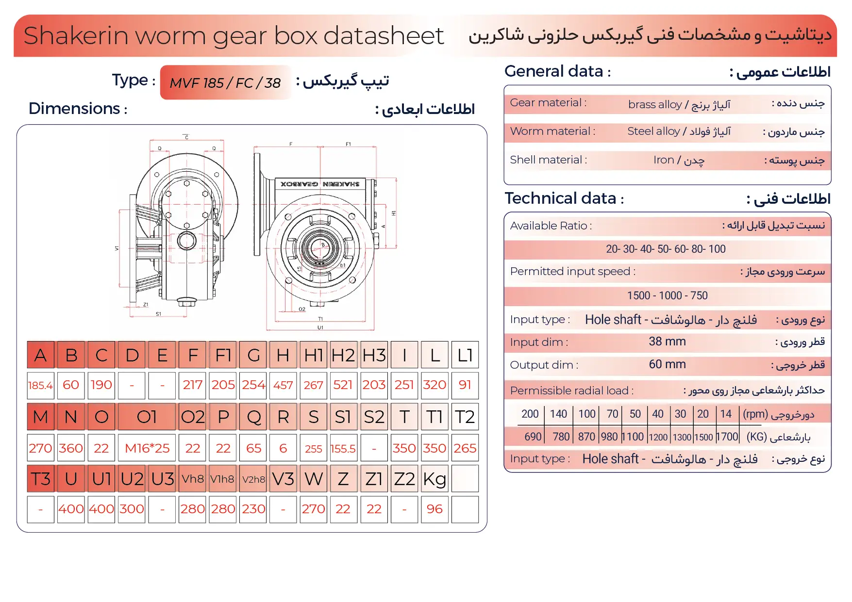 برای دستیابی به بهترین عملکرد از گیربکس شاکرین حلزونی MVF FC سایز ۱۸۵ فلنجدار، بررسی دقیق شرایط کاری، نوع بار، نسبت تبدیل و هماهنگی با موتور ضروری است. استفاده از منابع تخصصی مانند راهنمای انتخاب گیربکس صنعتی میتواند به انتخاب دقیقتر، افزایش بهرهوری سیستم و کاهش هزینههای نگهداری در بلندمدت کمک کند.