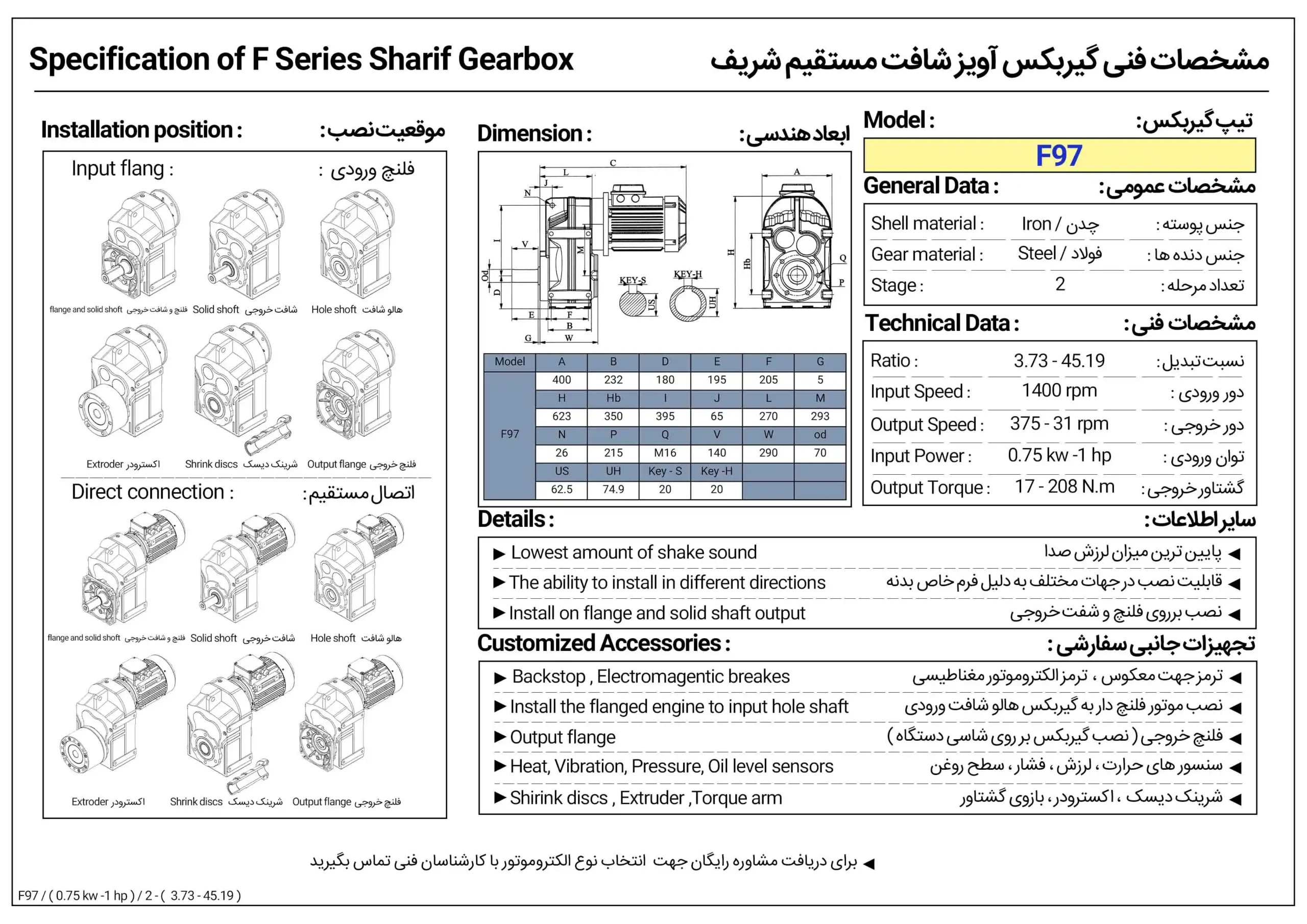 مشخصات عملکردی گیربکس سری F97