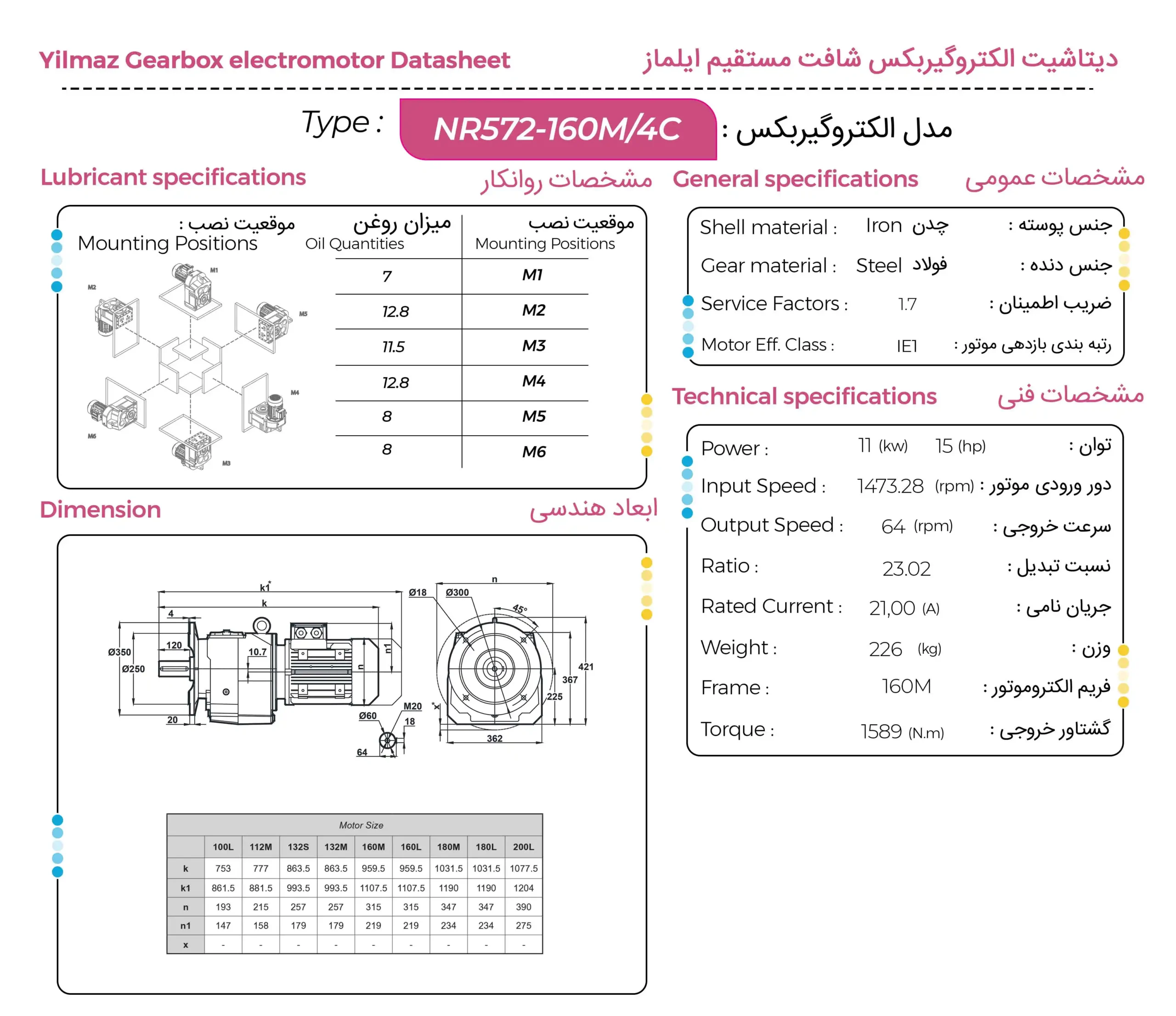 گیربکس شافت مستقیم فلنجدار ایلماز (Yılmaz) سری NR توان 11 کیلووات