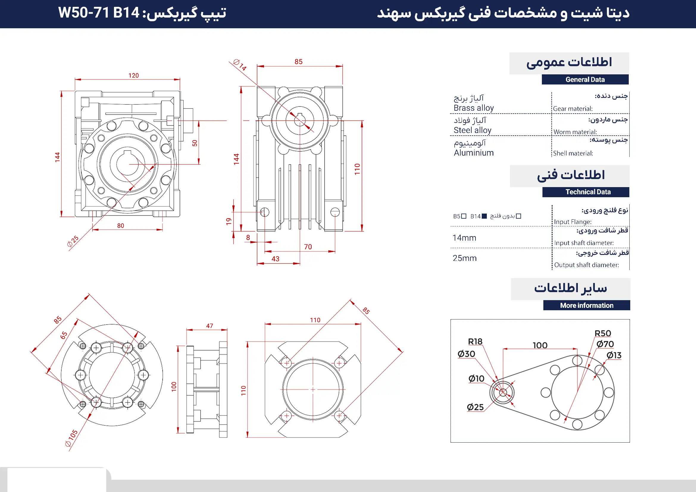 گیربکس مکعبی سهند سری W سایز ۵۰