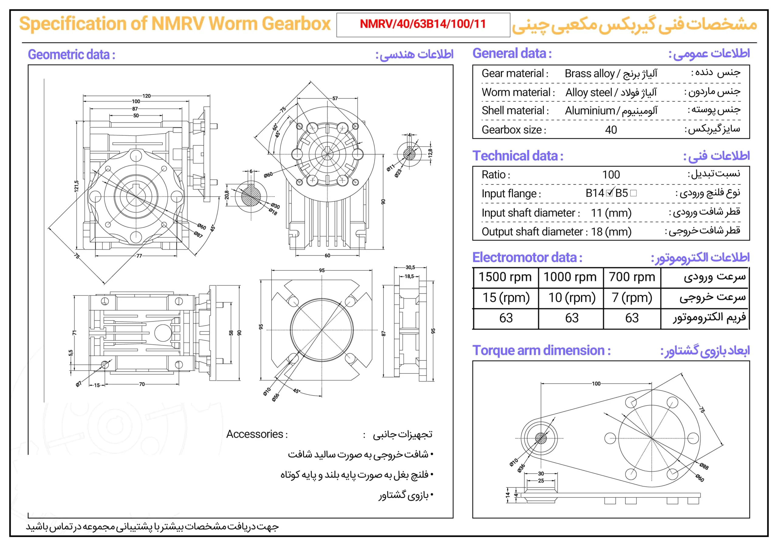 گیربکس کتابی چینی NMRV سایز ۴۰
