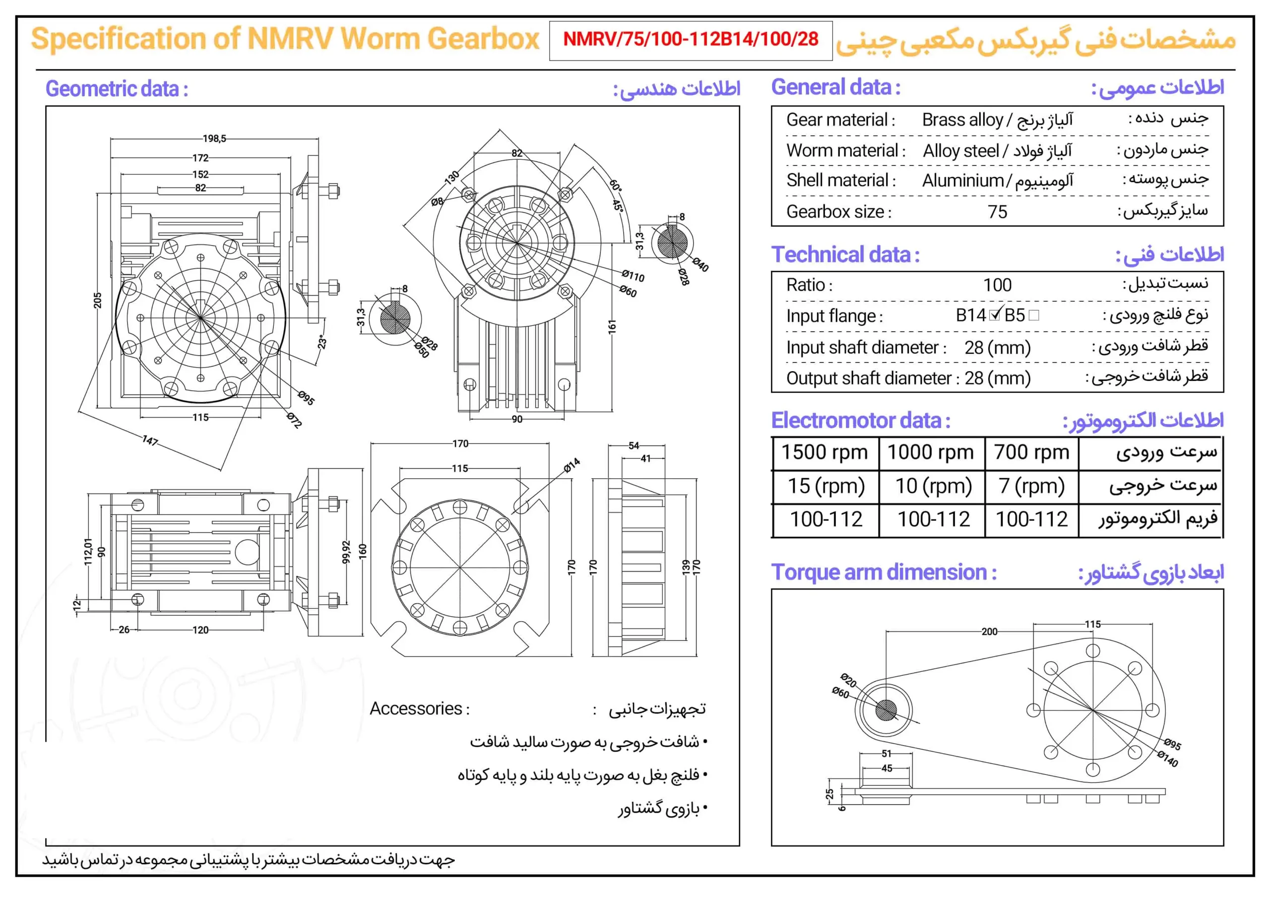 گیربکس کتابی چینی NMRV سایز ۷۵